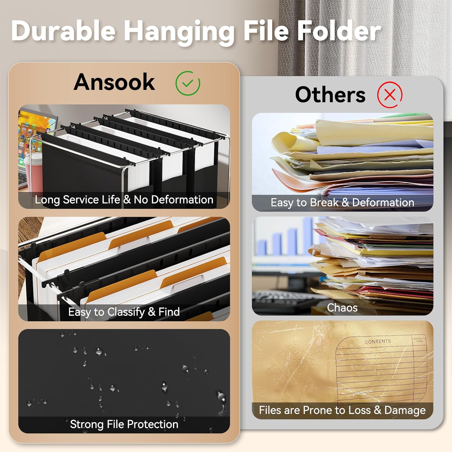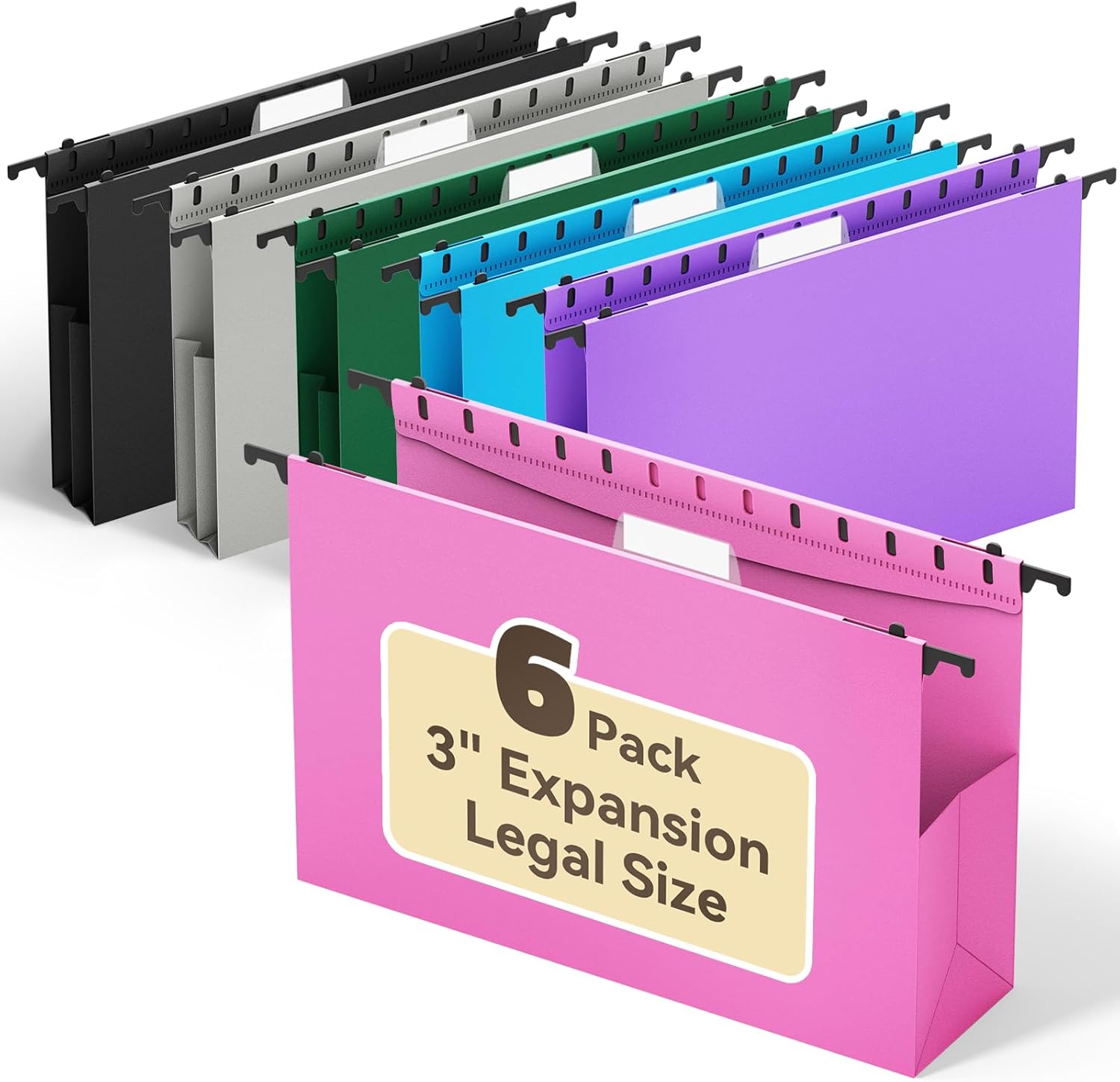 Ansook Legal Size Hanging File Folders Extra Capacity, Heavy Duty 3″ Expandable Legal File Folder Hanging,6 Pack Plastic File Cabinet Folders for File Frmae/Box, Office School Hanging File Organizer