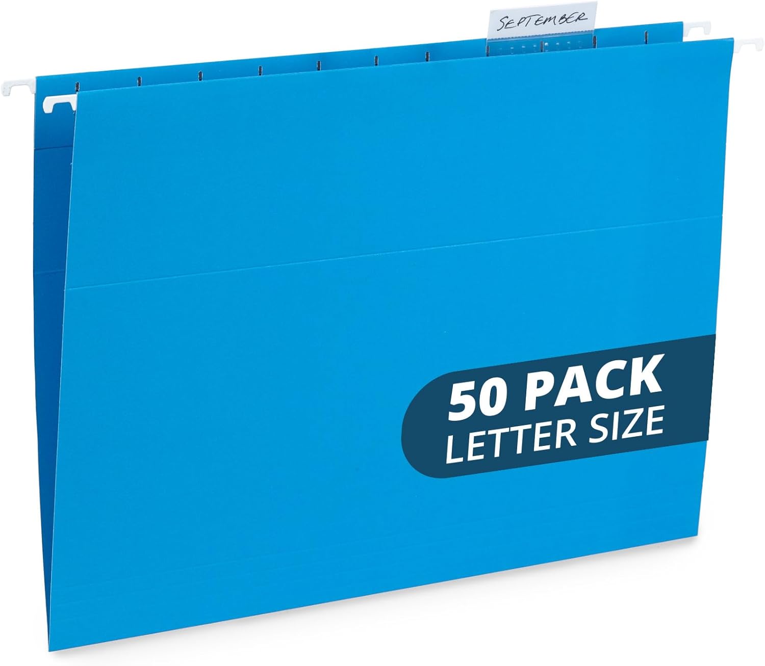 Blue Summit Supplies 50 Hanging File Folders, 50 Reinforced Hang Folders, Designed for Home and Office Color Coded File Organization, Letter Size, Black, 50 Pack