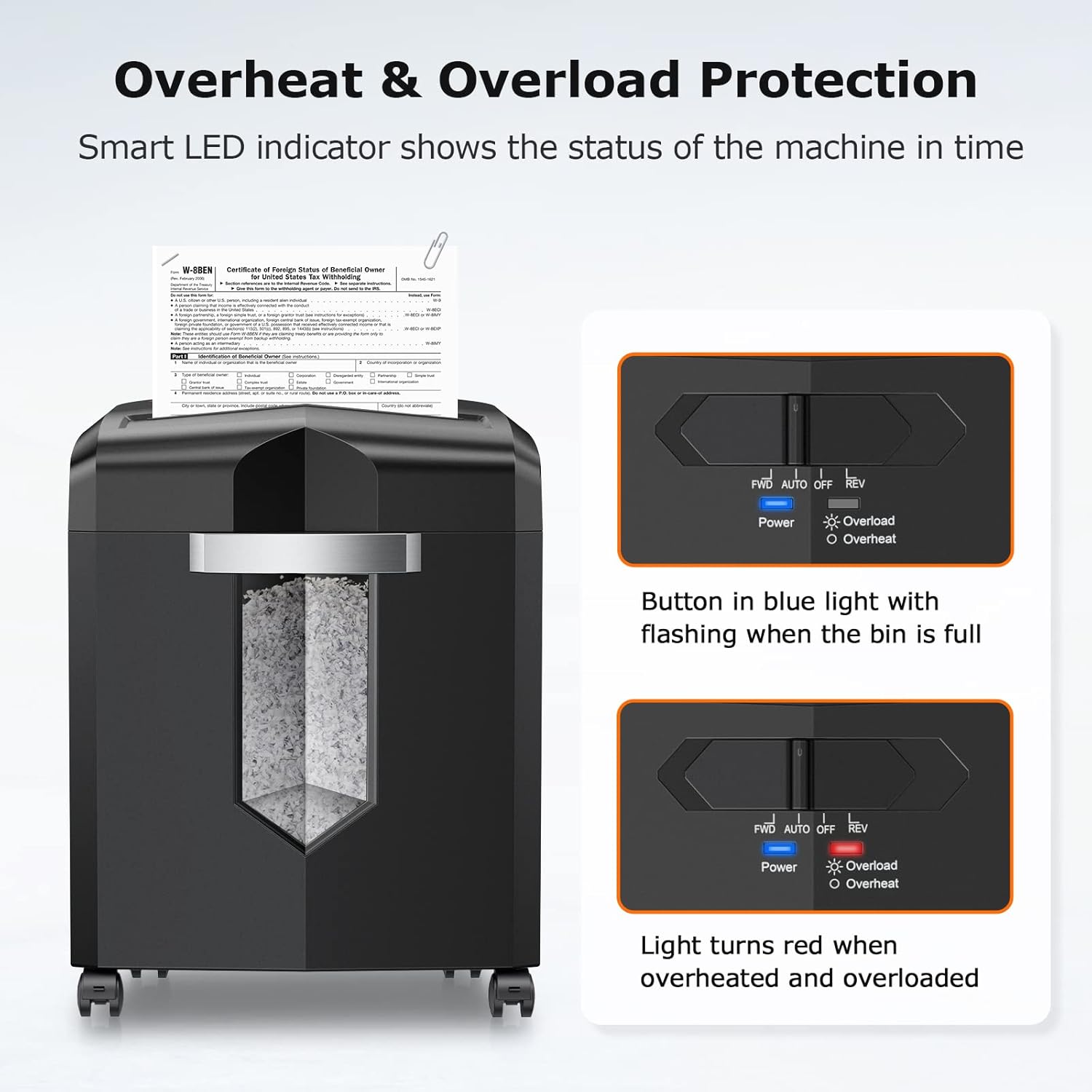 Bonsaii 12-Sheet Micro Cut Shredders for Home Office, 60 Minute P-4 Security Level Paper Shredder for CD, Credit Card, Mails, Staple, Clip, with Jam-Proof System & 4.2 Gal Pullout Bin C266-B