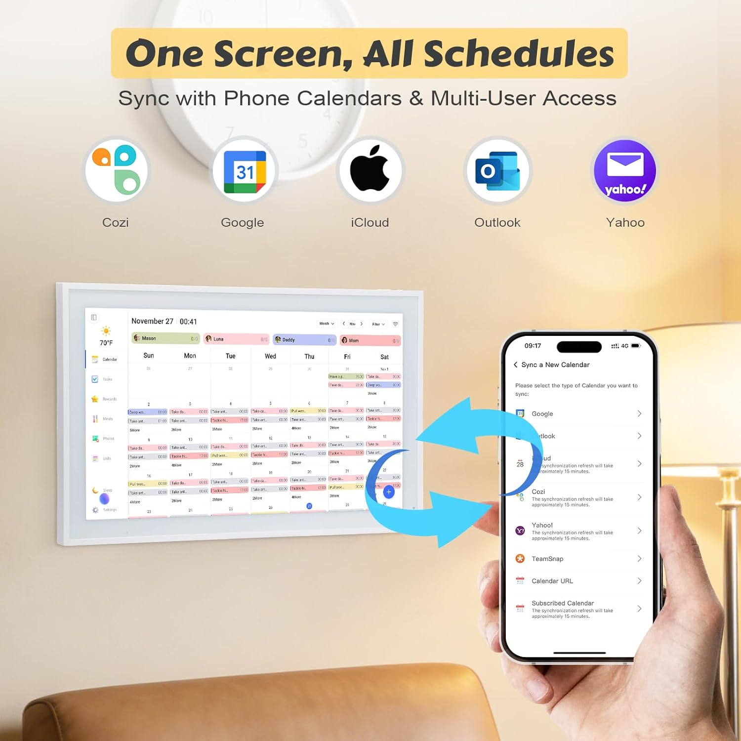 COMIX 21.5-inch Smart Digital Wall Calendar,Electronic Calendar with Touch Screen Display–Family Organizer for 2026 Schedules & Chore Charts,Includes Wall Mount,Ideal for Home & Office