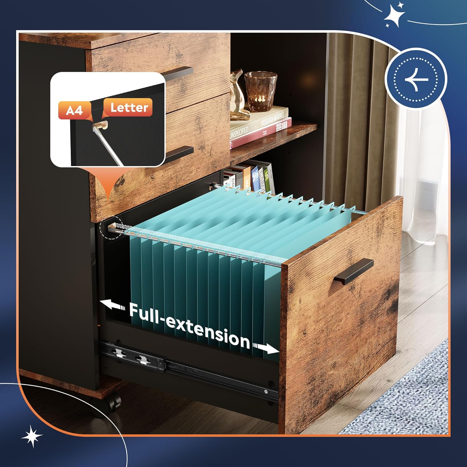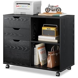DEVAISE 3 Drawer Mobile File Cabinet, Wood Lateral Filing Cabinet, Printer Stand with Open Shelves for Home Office, Rustic Brown