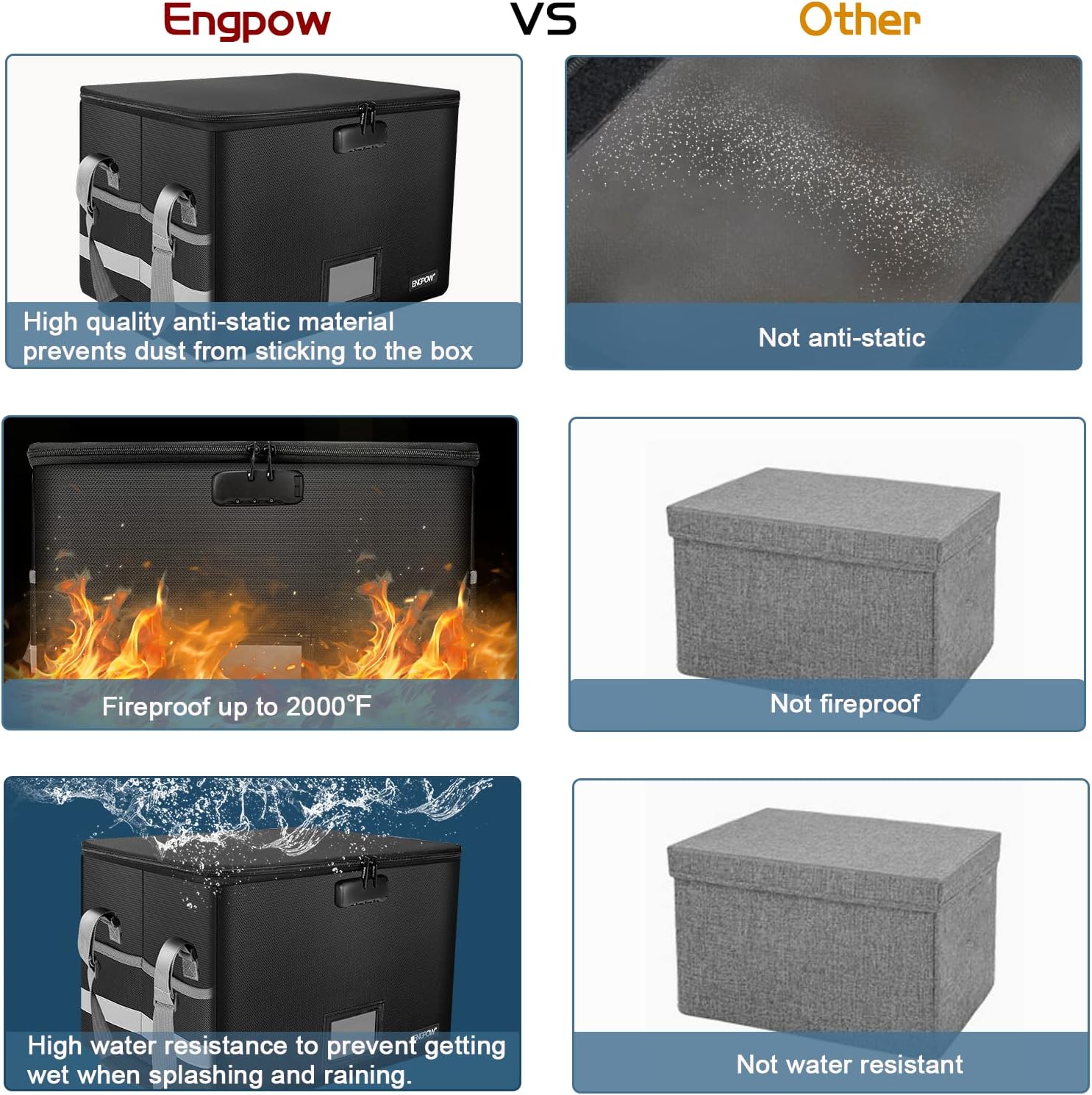 ENGPOW File Box with Lock,Fireproof Document Box with Zipper&Pockets,Collapsible File Organizer Filing Storage Cabinet with Handle,Portable Home Office Safe for Hanging Letter/Legal Folder,Black