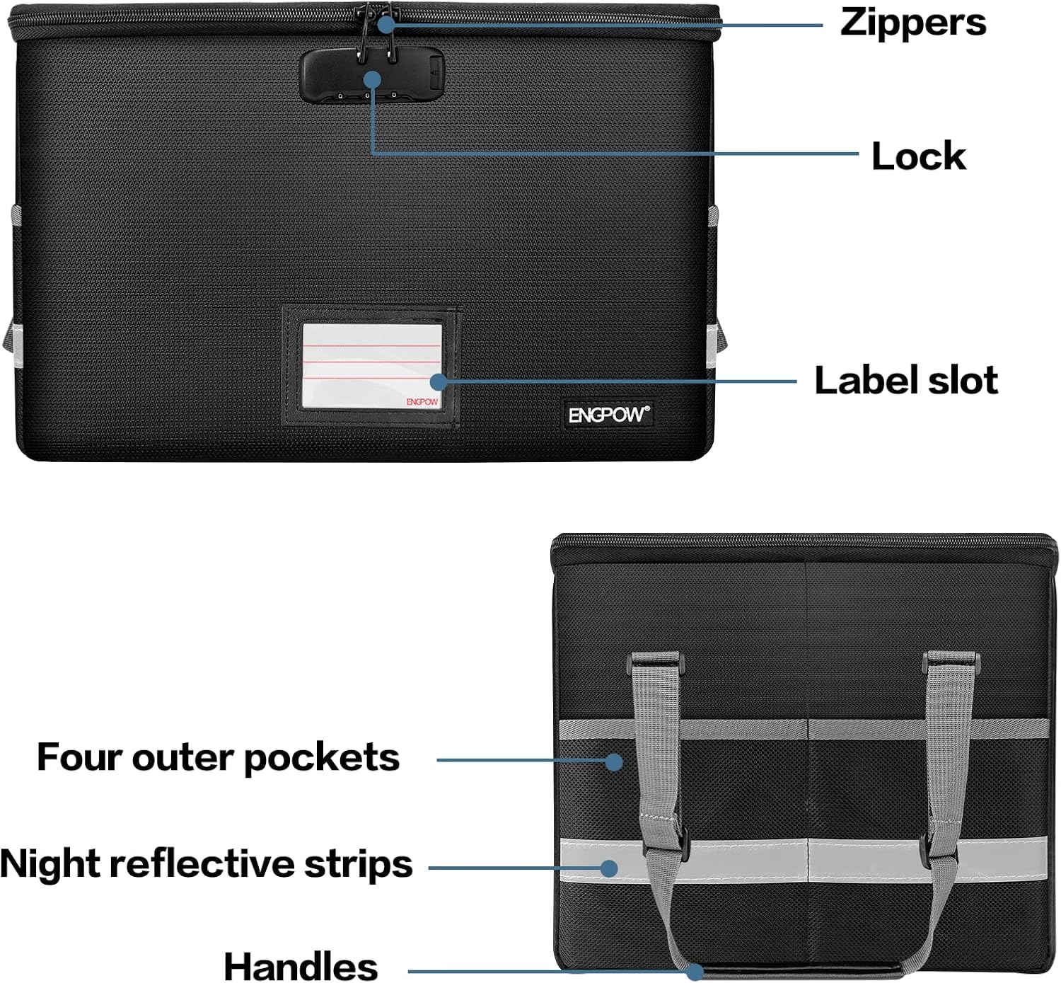 High quality combination lock design for added storage security, sturdy handle makes it easy to carry everything you need(You can adjust the carrying handle to the length you want), Side pockets and label slots let you store small items and labels.