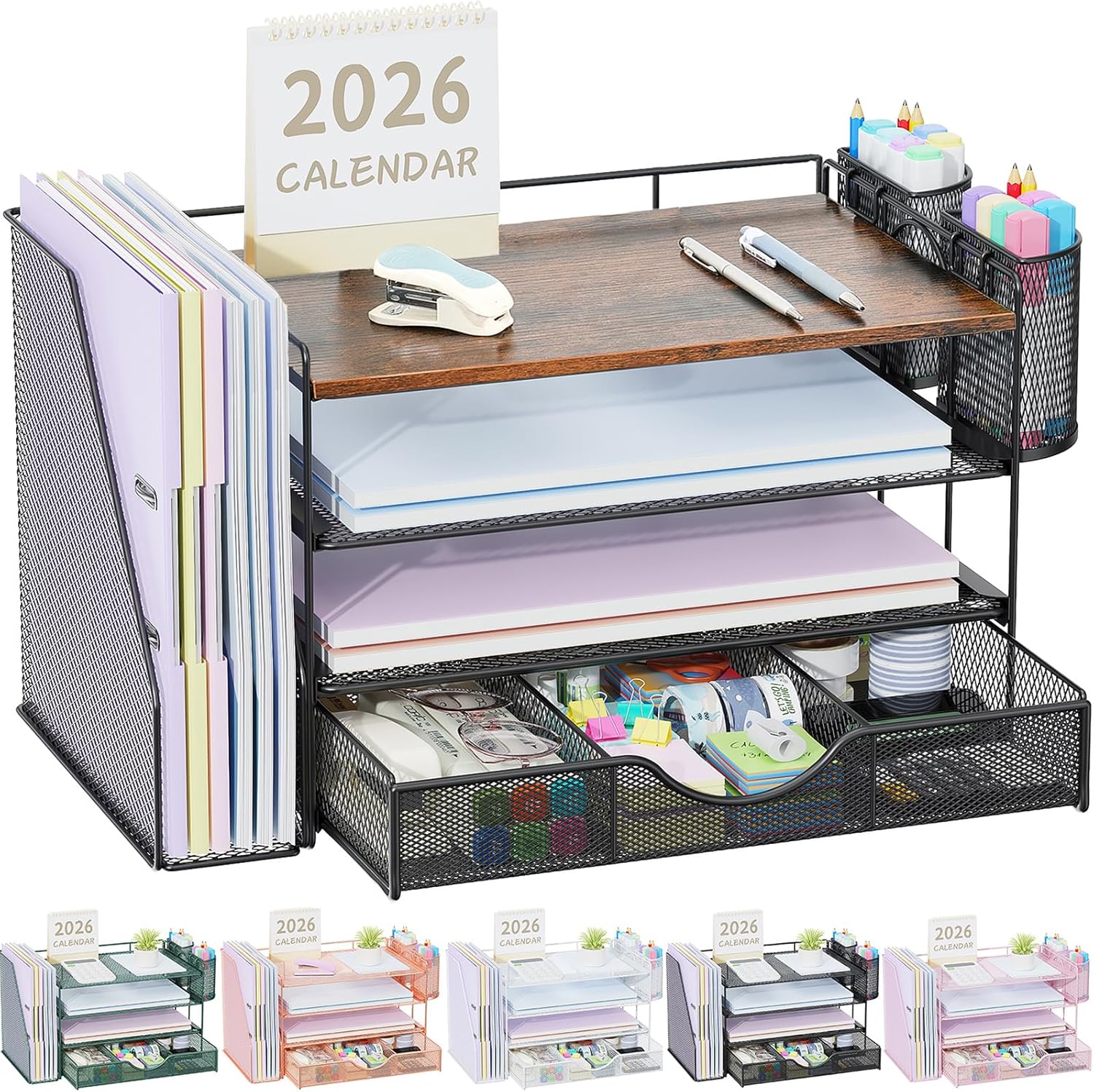 4 sliding trays + 1 Magazine Holders + 2 Hanging Pencil Holders + 1 sliding drawer, Detachable design to meet your various office needs, create more office convenience