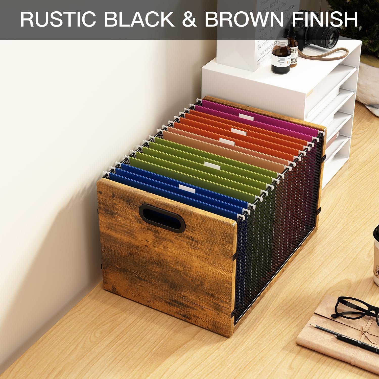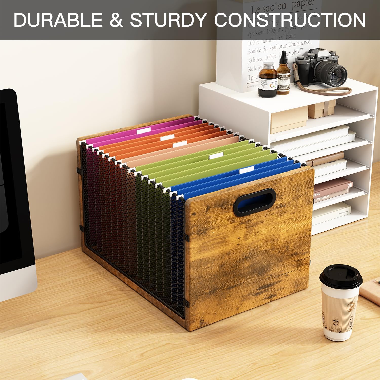 Hanging File Folder Organizer Filing Box with Handles File Organizer Holder for Desk Space-Saving Storage Bin for Letter Size – Open Design for Quick Access & Efficient Organization