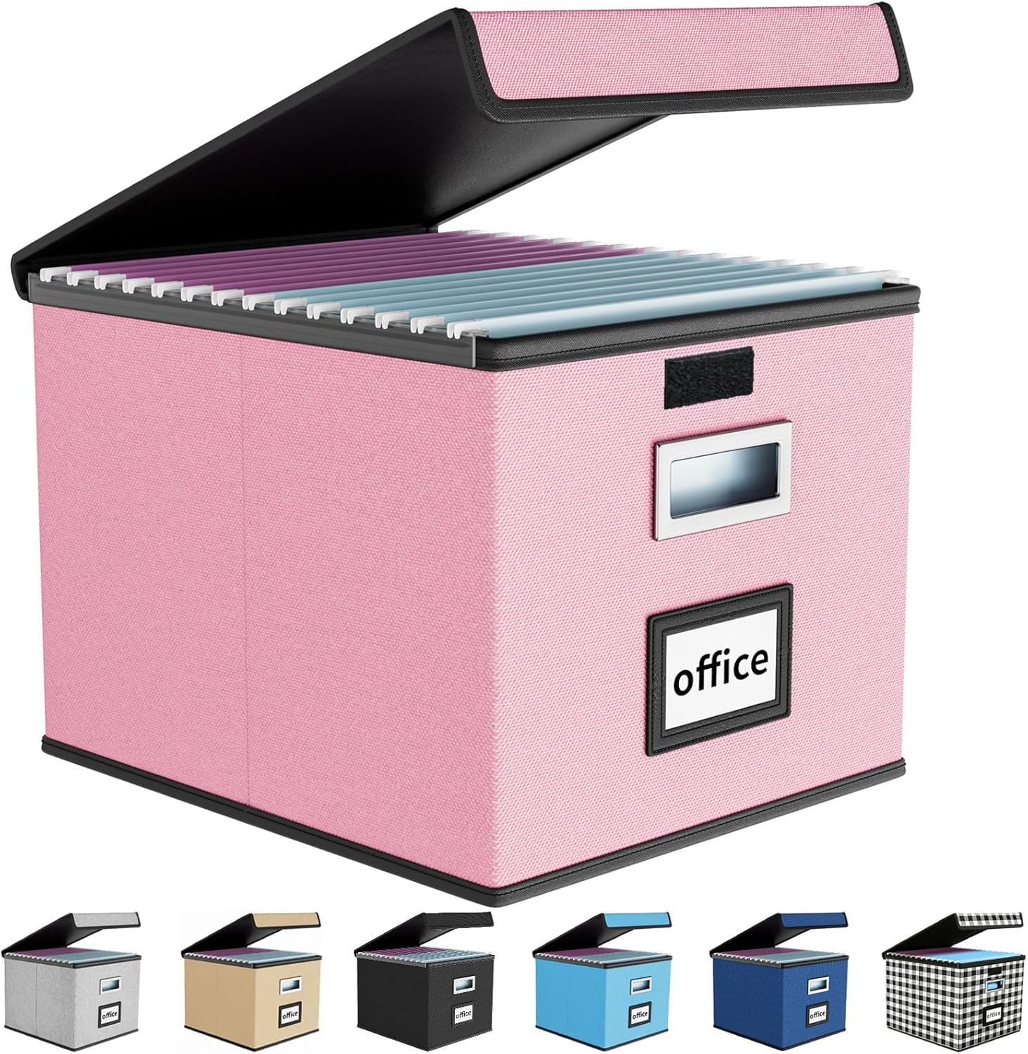 - Our foldable file organizer box uses a fashionable linen fabric shell and a cover with Velcro, instead of the single color and structure of the previous traditional file box. While providing more convenience for our office, it also adds more color and vitality to the dull office.