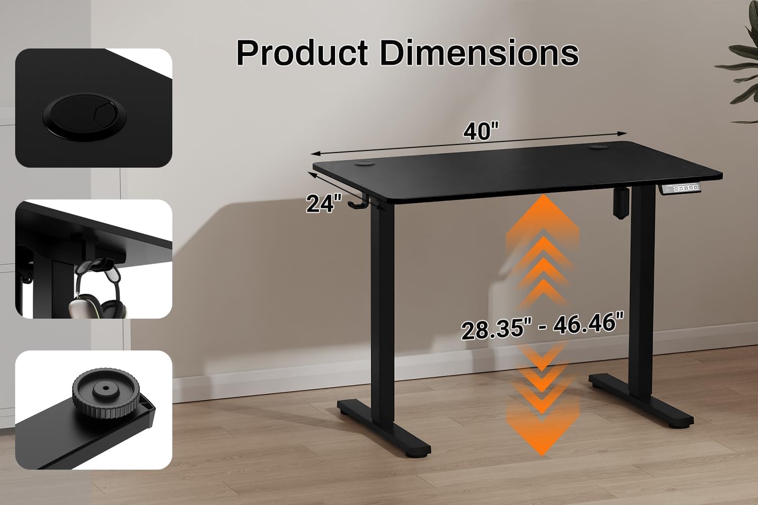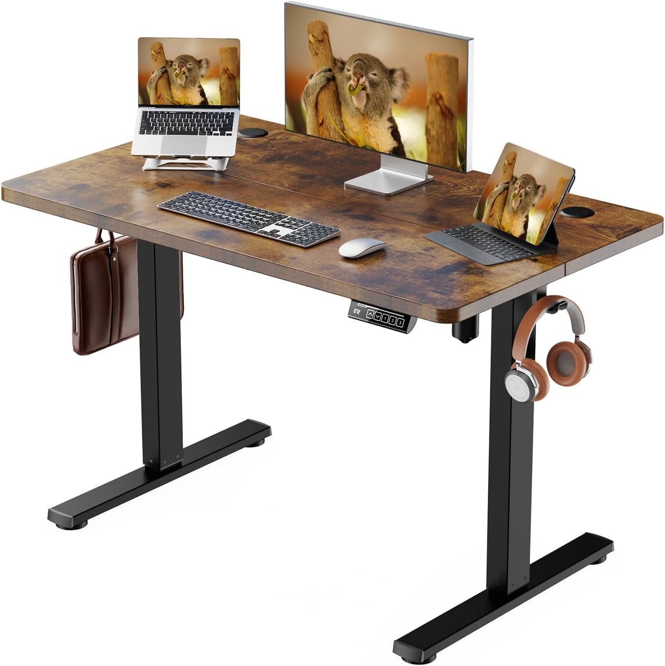 IRILIA Standing Desk Electric Height Adjustable Desk 39.37 x 23.6 Inches Sit Stand up Desk, Computer Home Office Desk Memory Preset with Two-Piece Desktop (Black, 40 * 24 Inch)