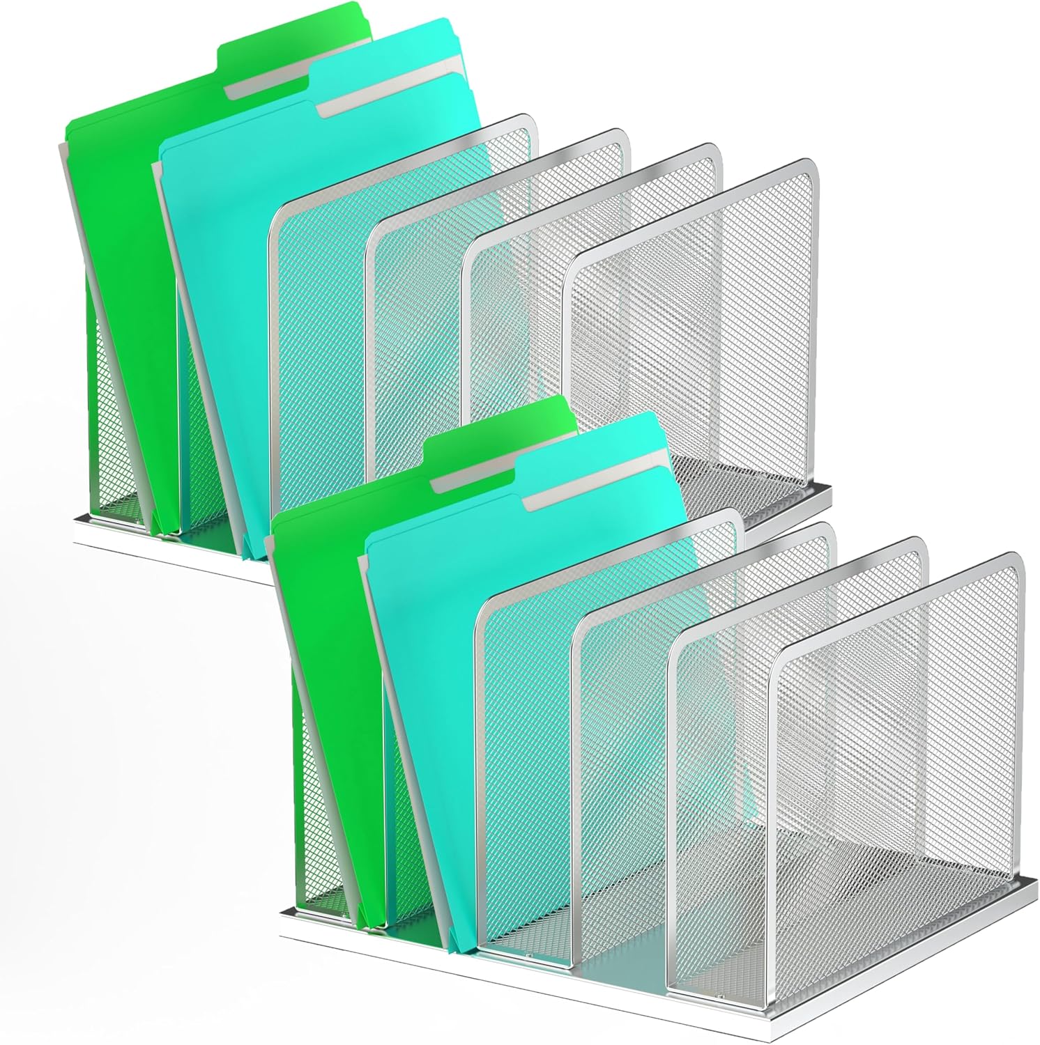 Kuntine.B Desk File Organizer 5 Sections Upright Mesh Desktop Organizer File Sorter Office Organization File Holder for Home, Office & Classroom