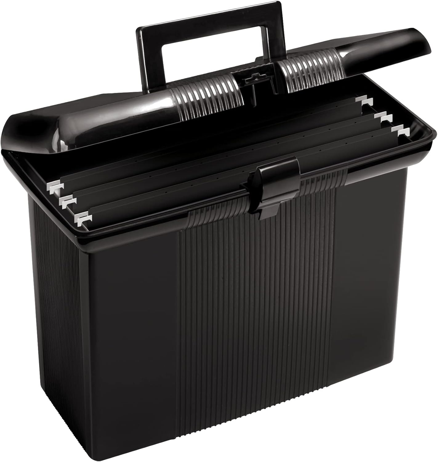 - Built-in handle and double latch closure keeps documents secure; portable file box travels neatly between rooms or to and from the classroom or workplace