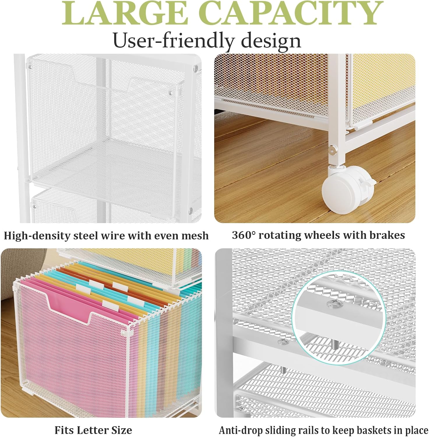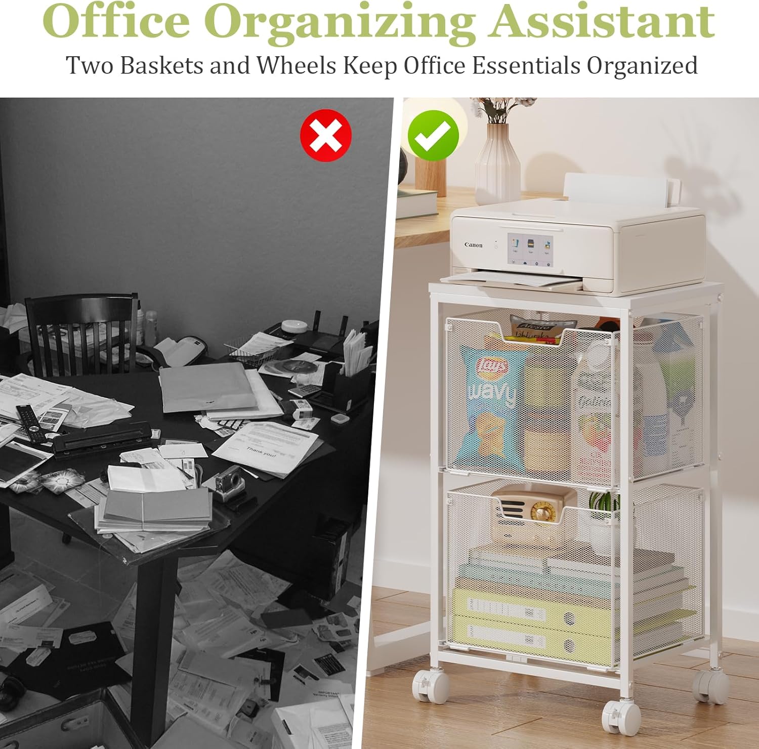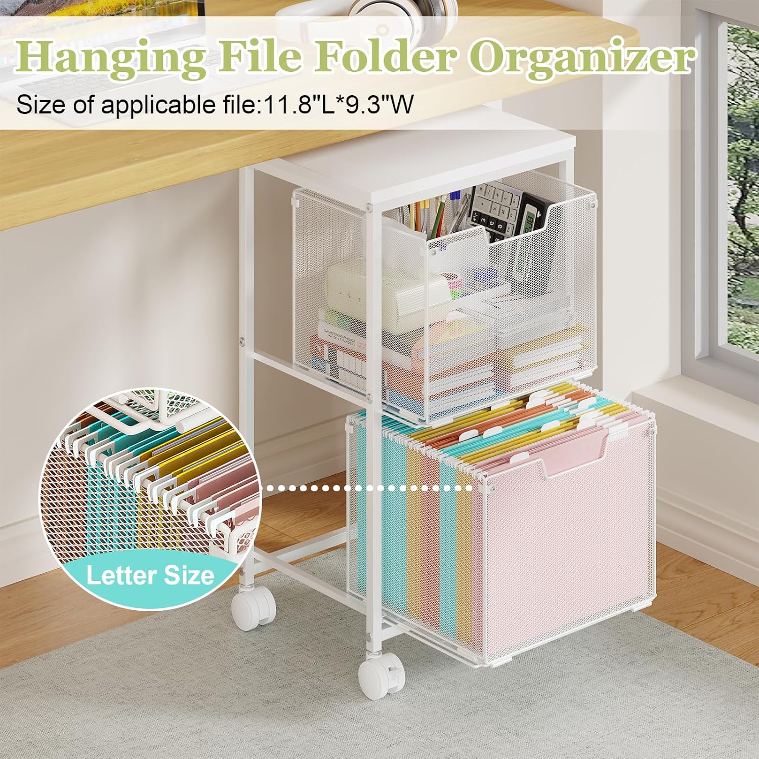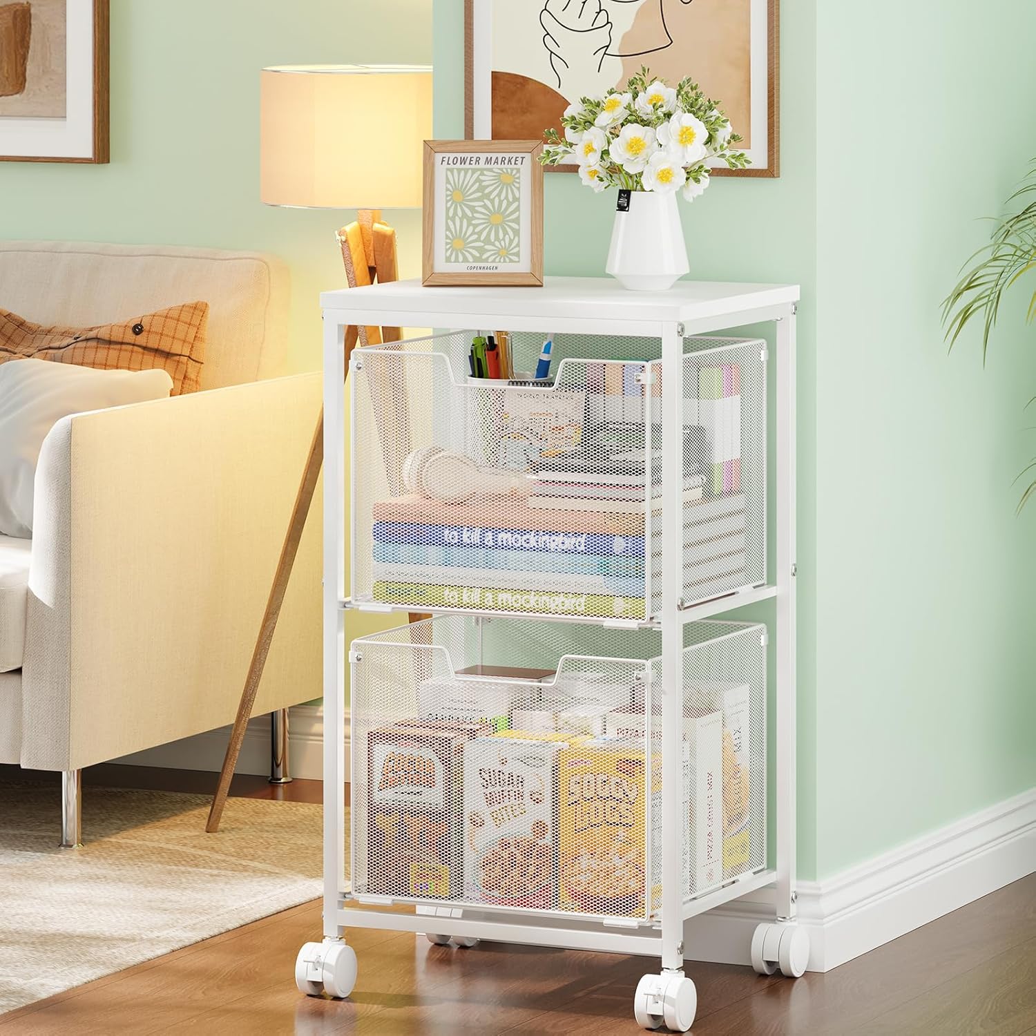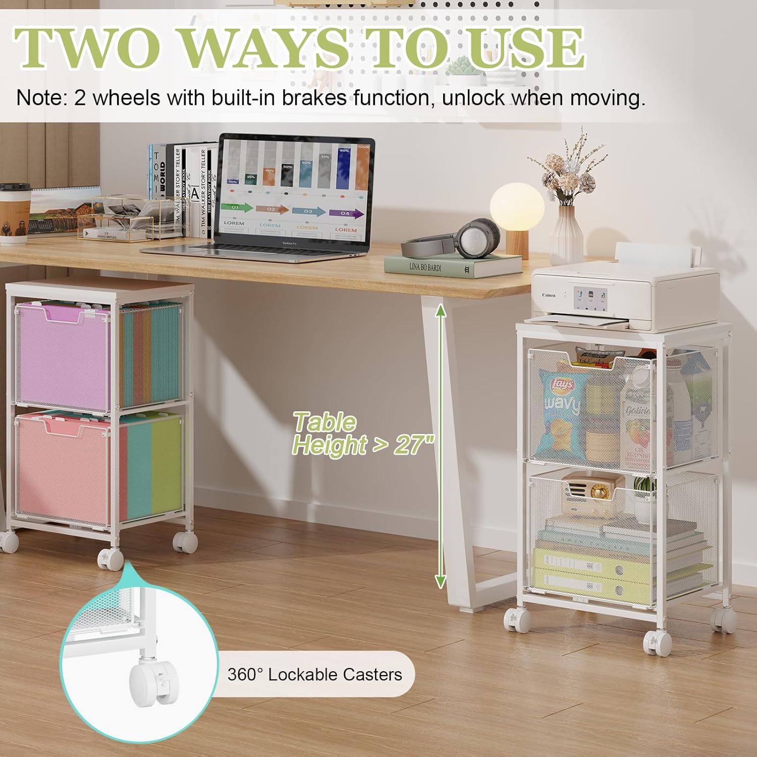 It can hold letter-sized folders and also serves as a multi-functional cart for snacks, daily essentials, fruits, and more.