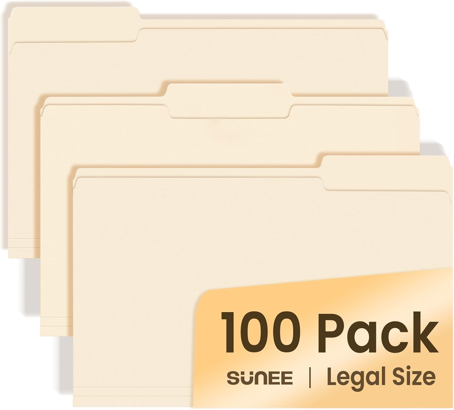 SUNEE File Folders, 150 Pack Manilla Folders 8.5 x 11, 1/3 Cut Tab for Easy Labeling and Organization, Durable Standard Paper for Home, Office, School Filing