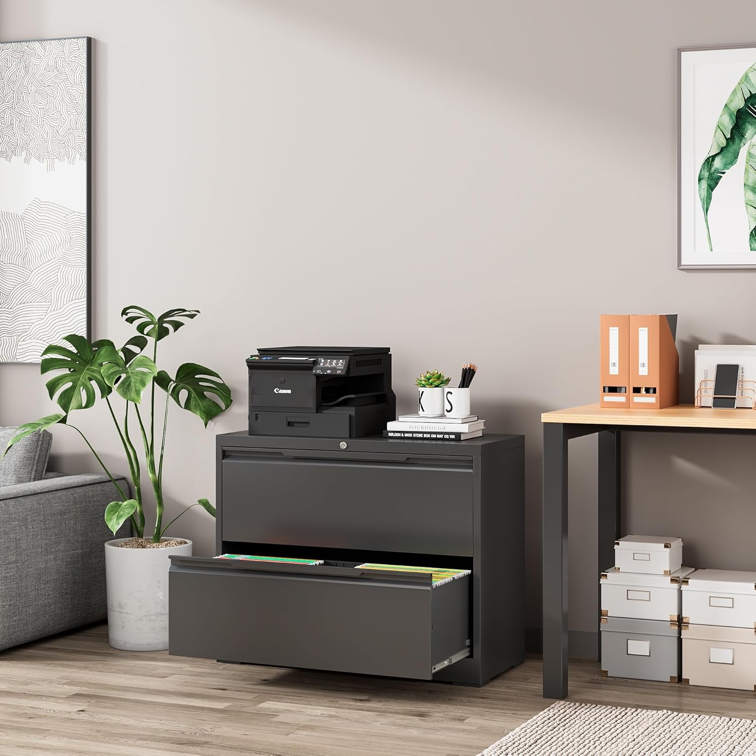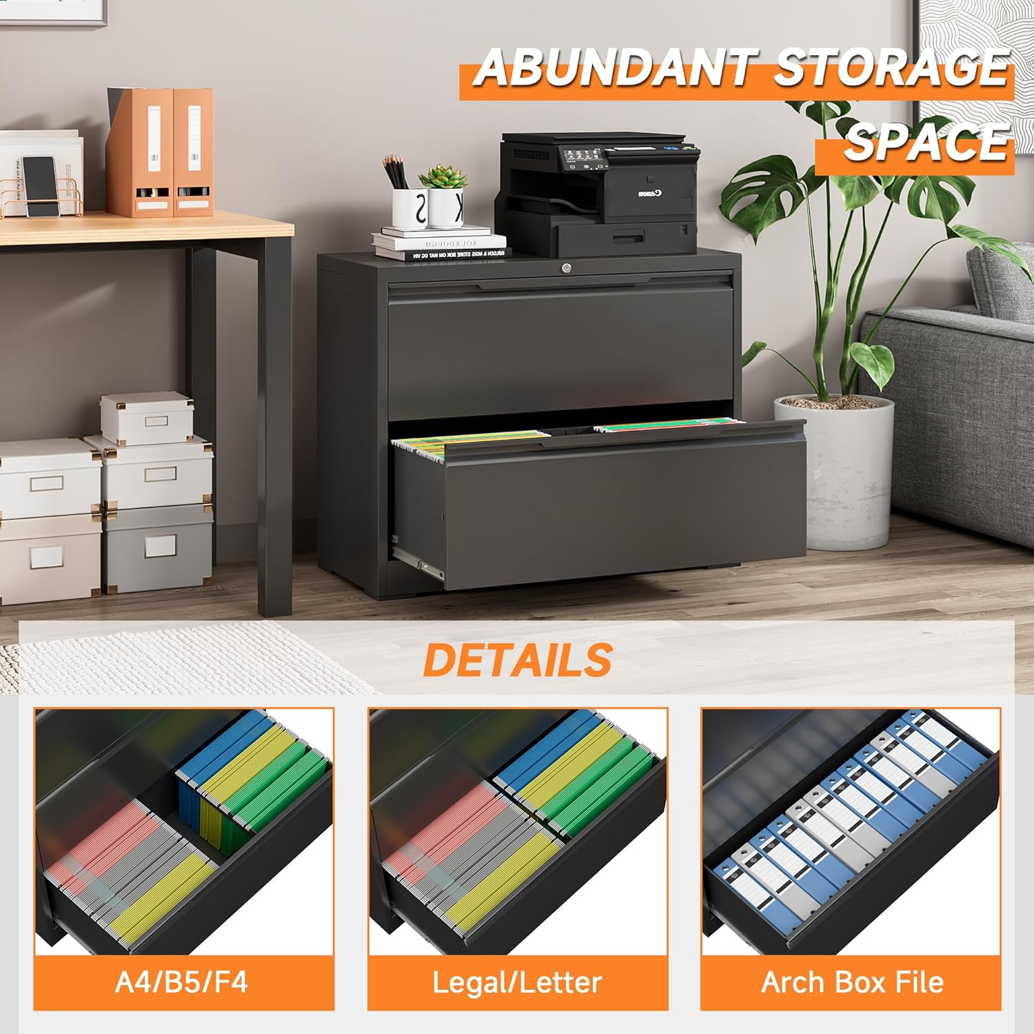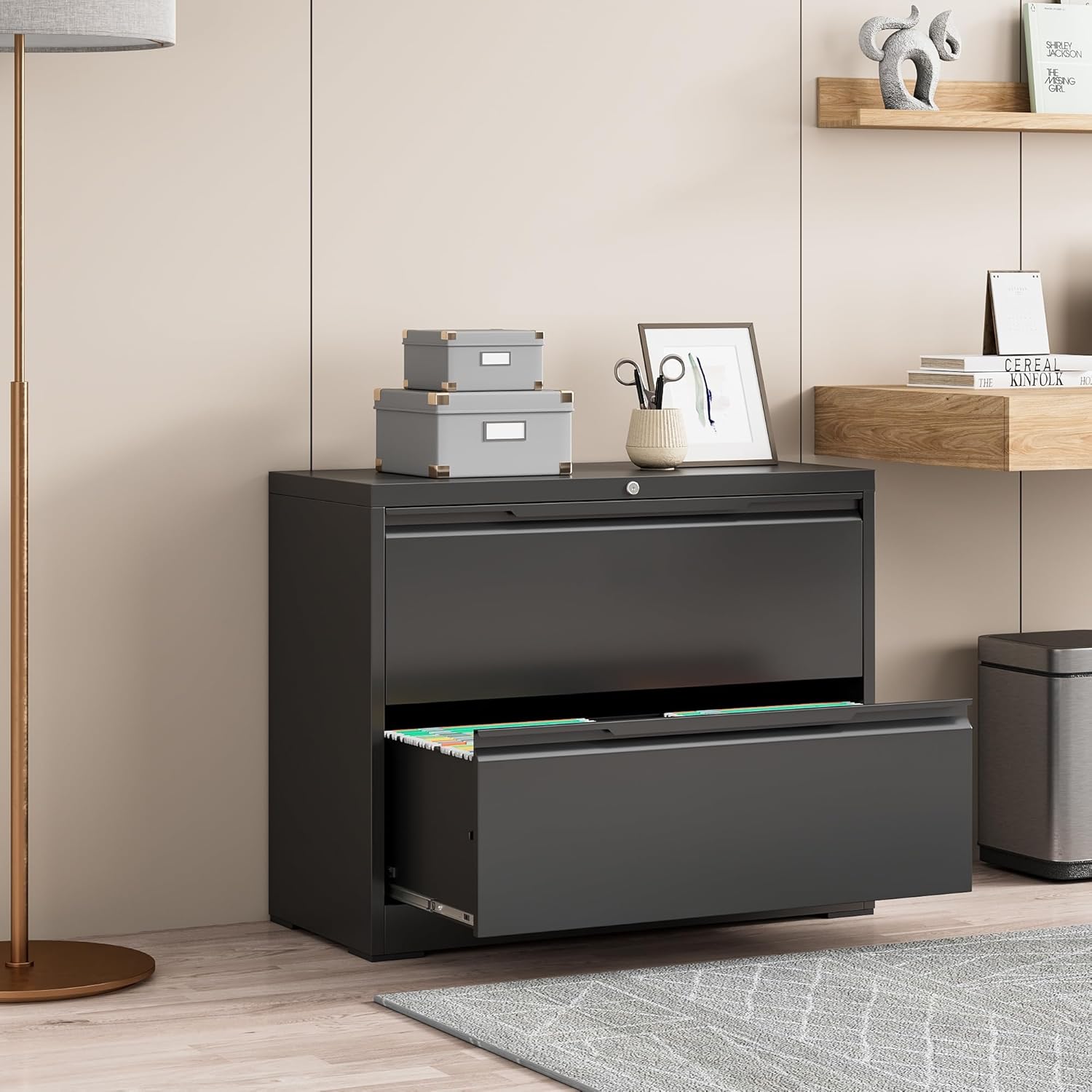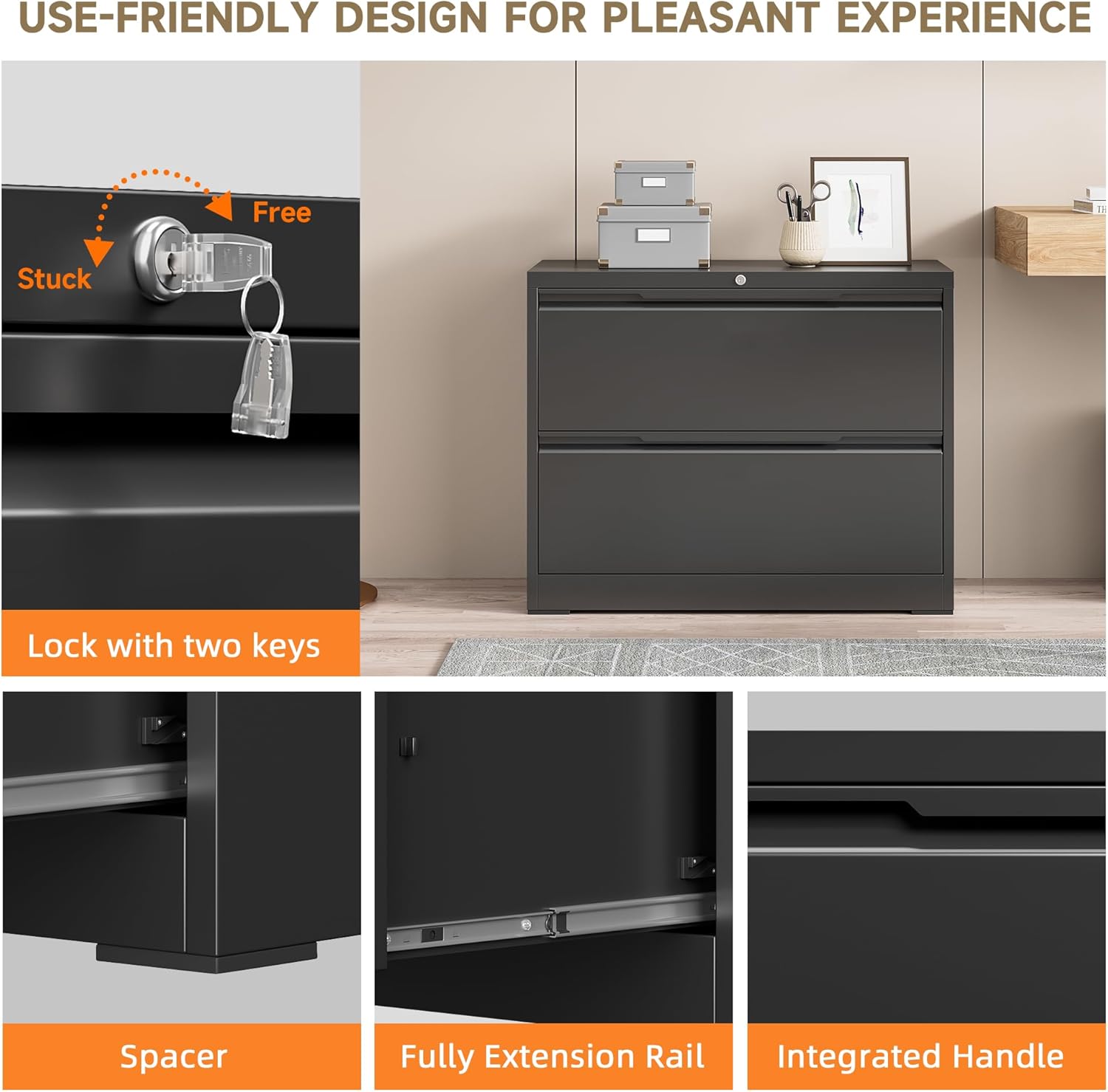 Topass Lateral File Cabinets with Lock, 2 Drawer Steel Wide Filing Organization Storage Cabinets, Steel File Cabinet for A4 Legal/Letter Size, Assembly Required (Black, 2 Drawer – 36″ W)