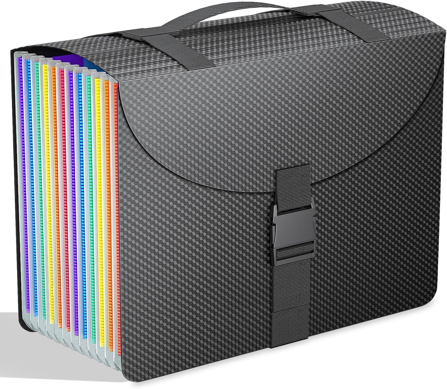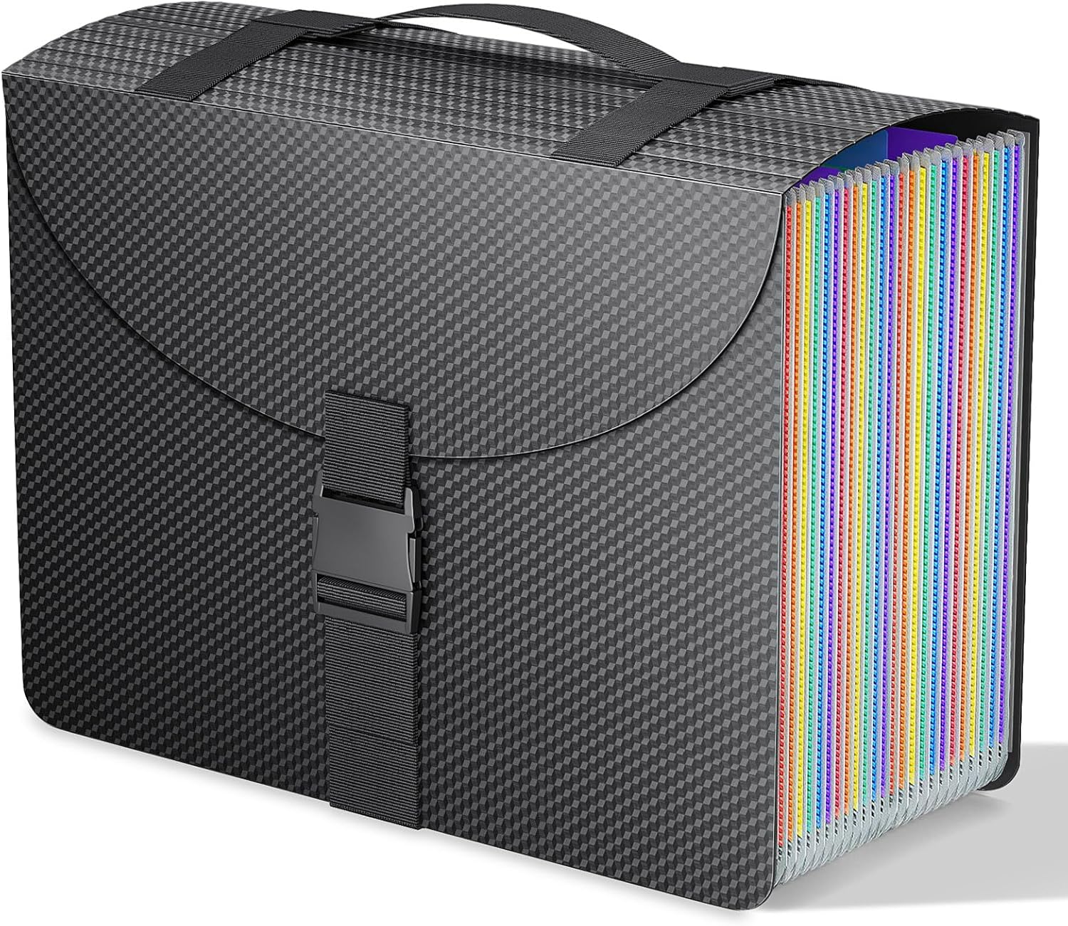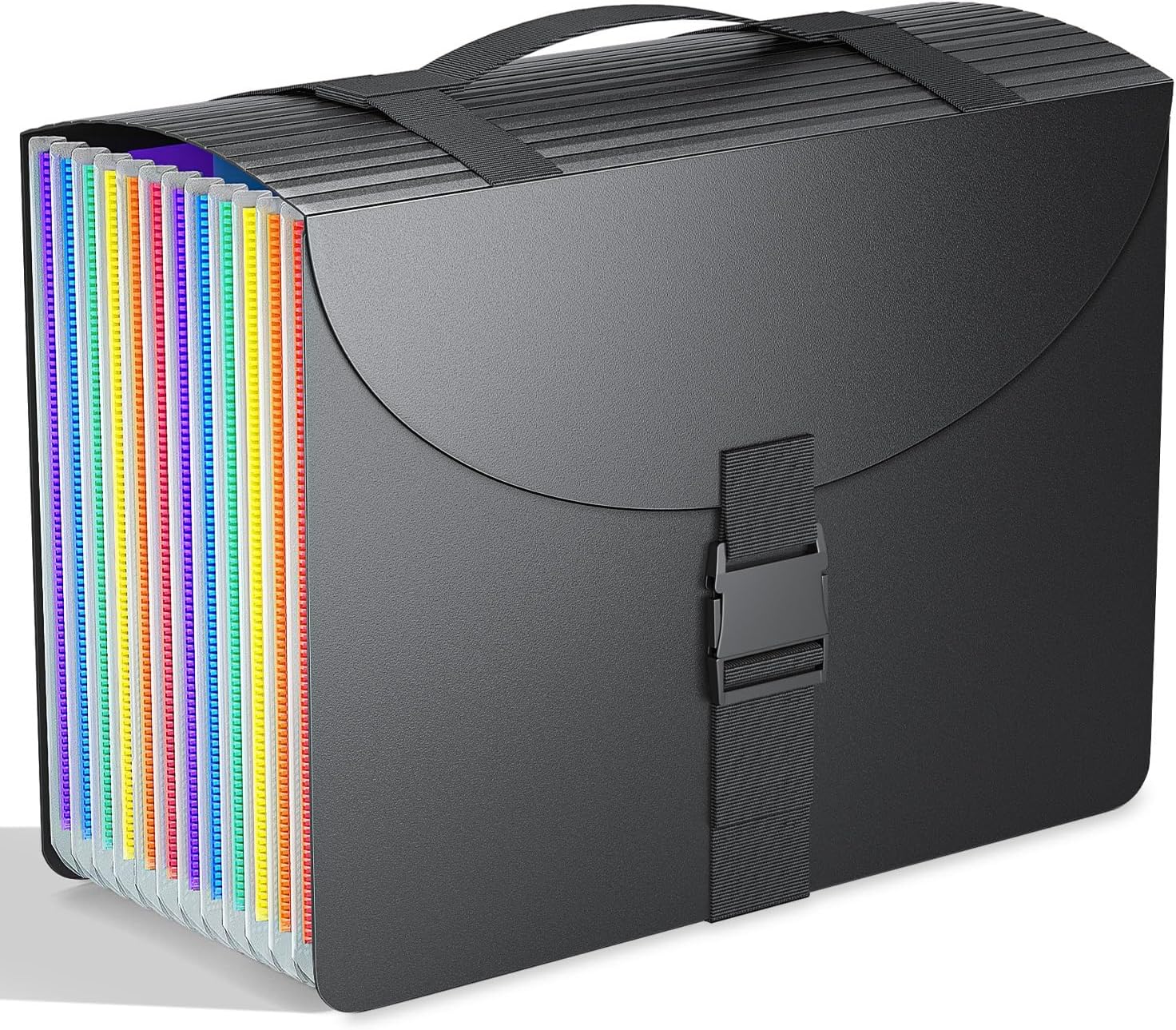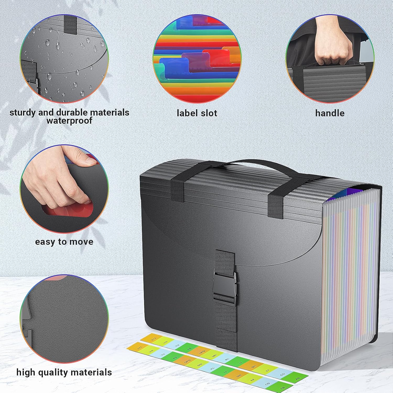 This expanding file organizer is perfect choice for them, designed with 25 individual pockets, including tab and inserts, colored label, lock catch is very special for making sure documents are kept safely.