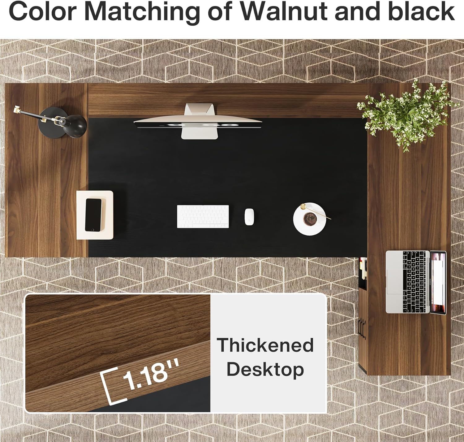 Exquisite walnut and black finishes, enhances elegance and against scratches, bumps, and spills