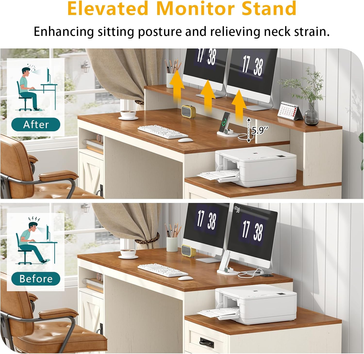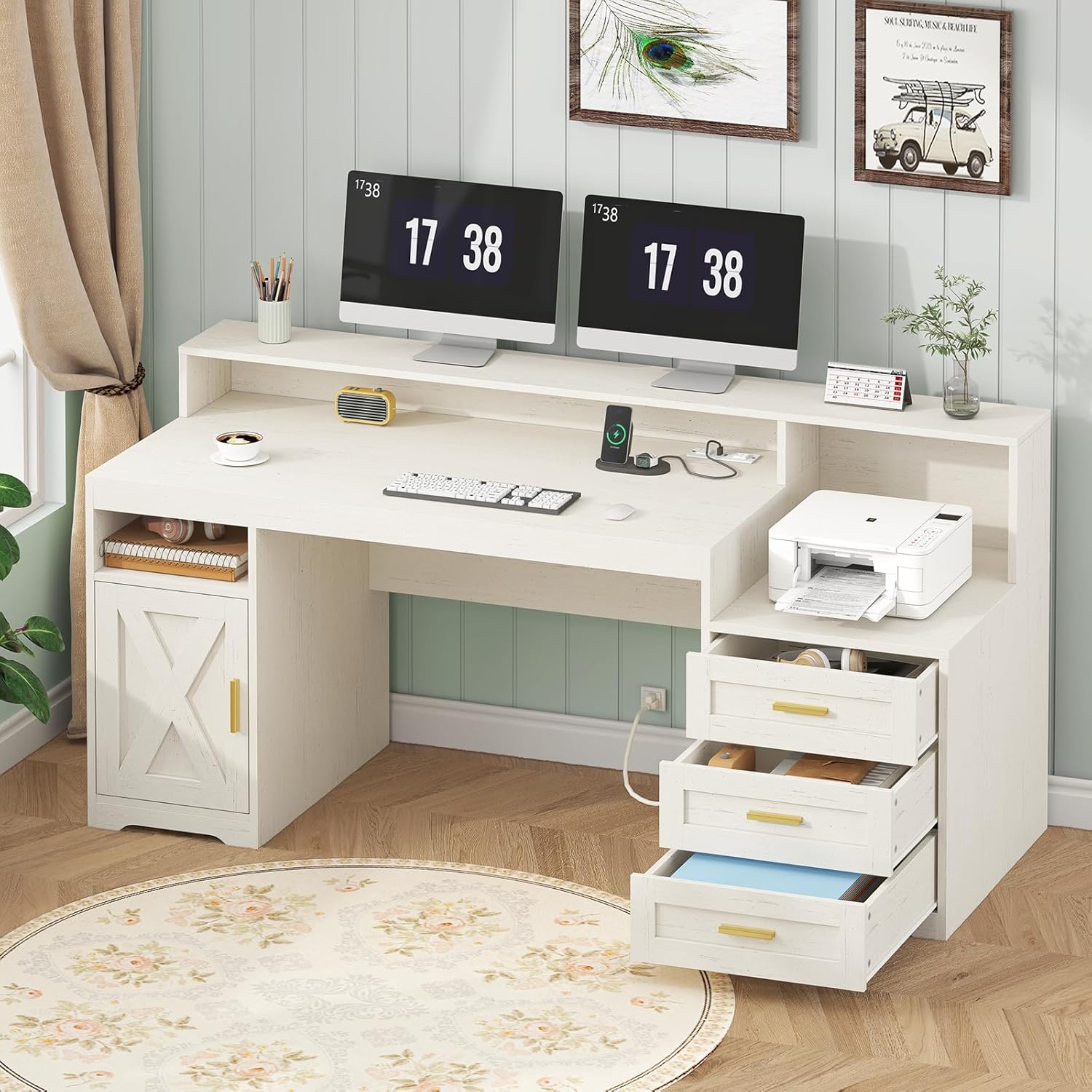 65'' Farmhouse Computer Desk With Drawers & Printer Space